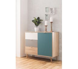 Rangement Scandinave Aruba Chene Gris Bleu Et Blanc Buffet But
