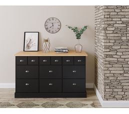 Range Tout 9 Tiroirs Hampton Noir Et Pin Massif Commode