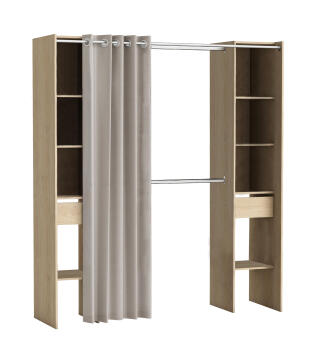 Wardrobe Kit 2 Colums 2 Drawers With Curtain Oak H203cm X W180cm