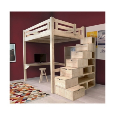 Lit Mezzanine Alpage Bois Escalier Cube Hauteur Reglable 140x200