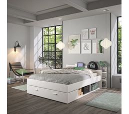 Lit Avec Rangements 140x190 Cm Tonight Blanc Lit But
