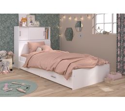 Lit Basile Avec Rangements Et 2 Tiroirs 90x190cm Blanc