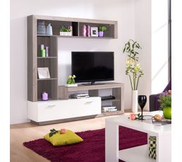 Meuble Tv Glen Blanc Et Imitation Bois Gris Meuble Tv But