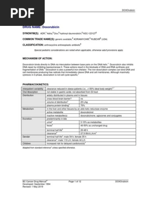 Drug Name Doxorubicin Synonym S Common Trade Name S