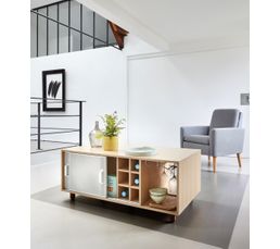 Table Basse Bar Coffre Rectangulaire Frene 4 Tiroirs