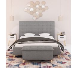 Lit 160x200 Avec Tete De Lit Capitonnee En Tissu Gris Clair